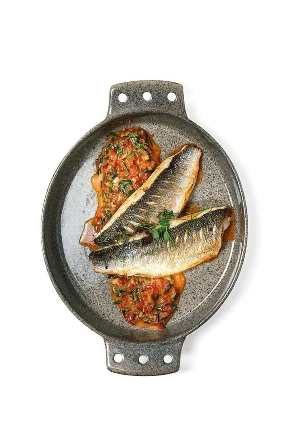 ШАГ 3 Разогреть сковороду, добавить арахисового масла, выложить рыбу кожей вниз, жарить, поливая маслом, почти до готовности. Перевернуть и поставить в заранее разогретую духовку в режиме гриль на пару минут.