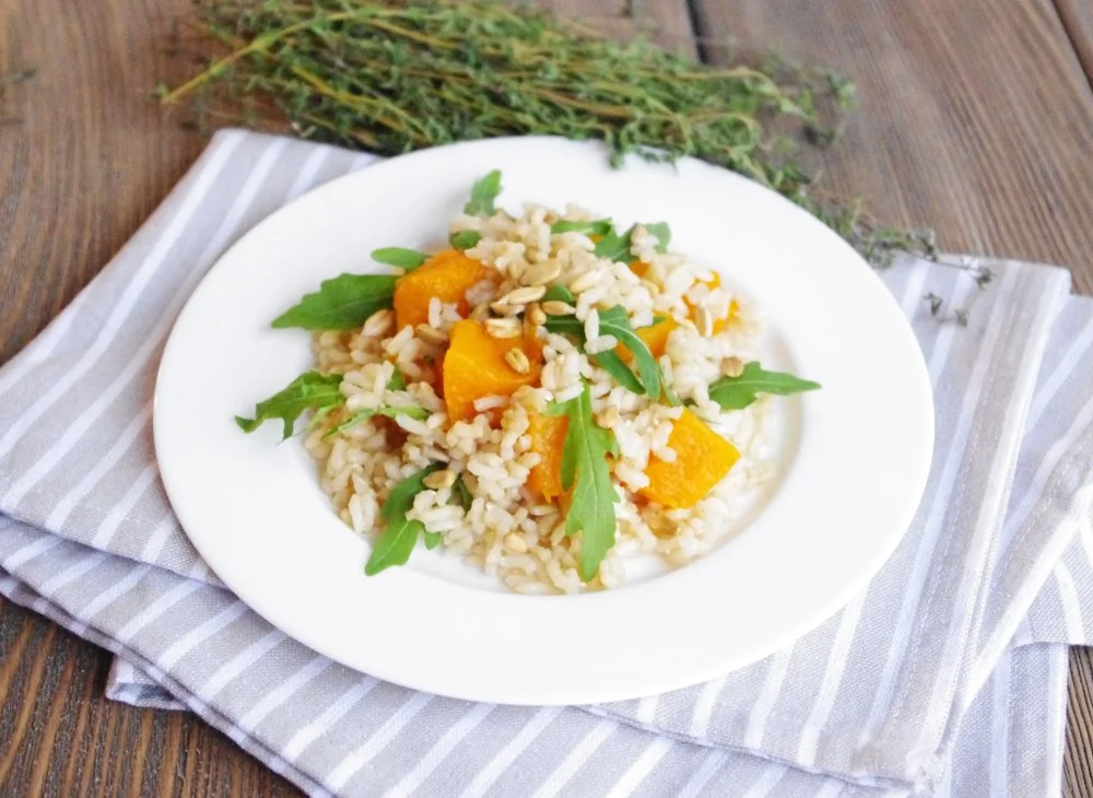 Ингредиенты для приготовления Нешлифованный рис с запеченной тыквой:
