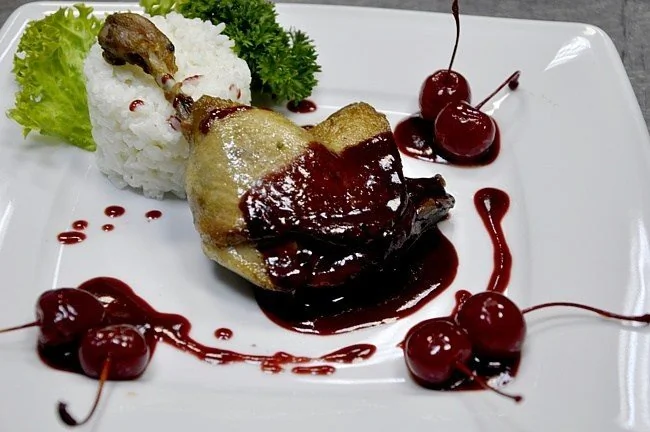 ШАГ 3 Вымываем ножки, обсушиваем и кладем в керамическую форму для запекания. Добавляем розовый перец, веточку розмарина, черный молотый перец и по желанию 1 гвоздичку.