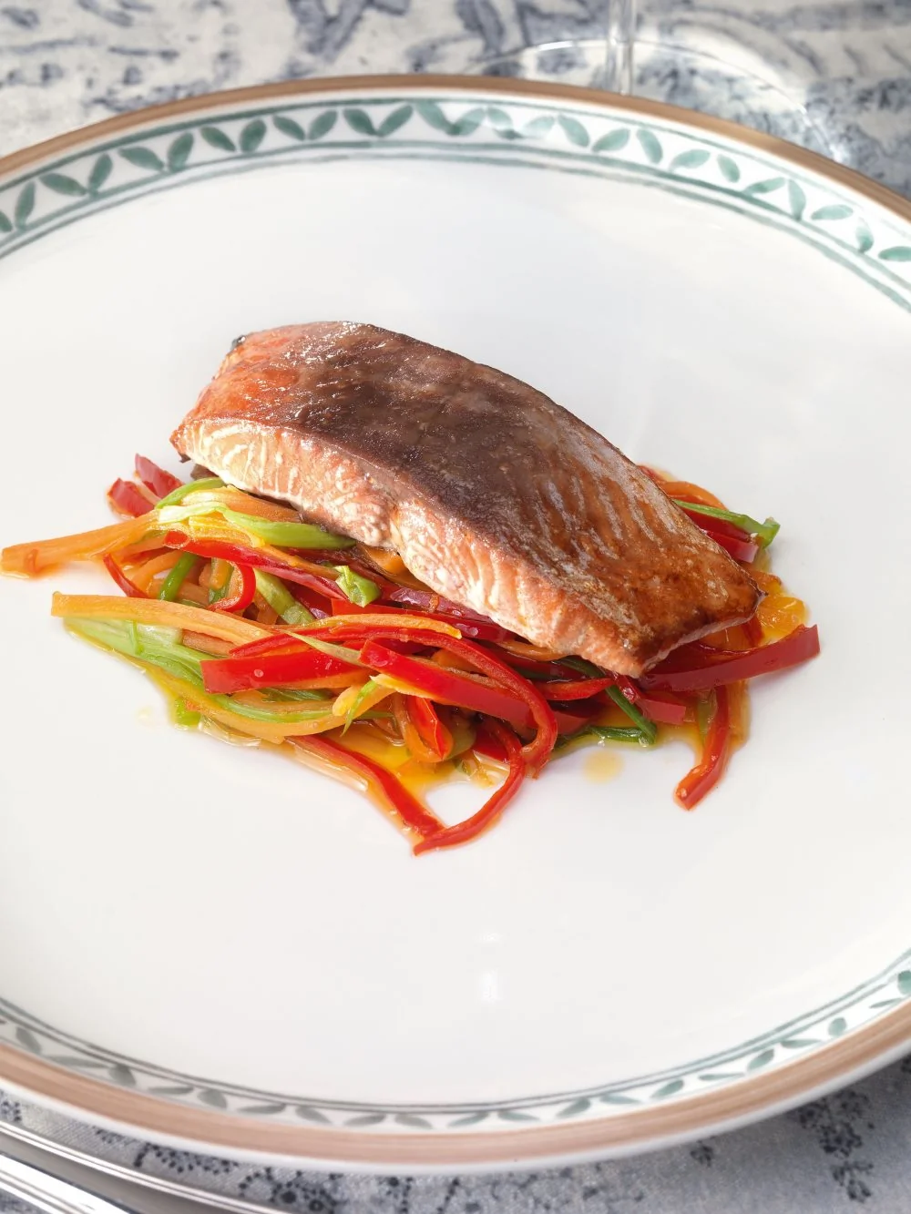 Ингредиенты для приготовления Лосось с острым перцем, зеленым луком и морковью: