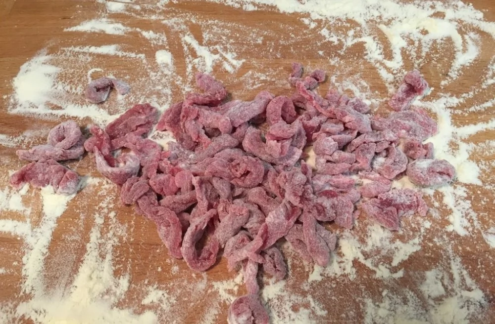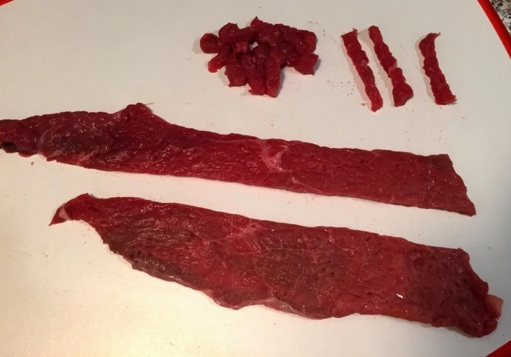 ШАГ 1 Мясо порезать на филе толщиной до 1 см