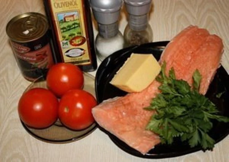 Ингредиенты для приготовления Лосось с маслинами и томатами: