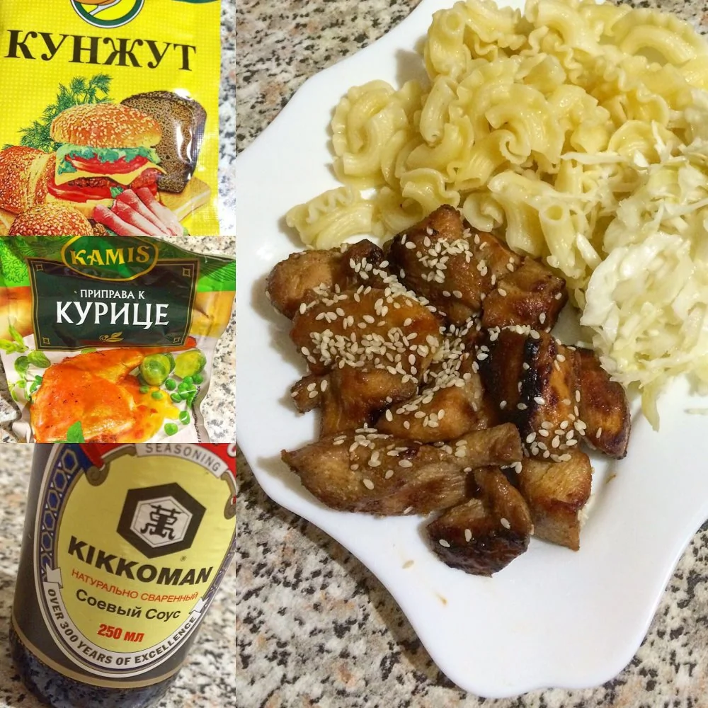 ШАГ 2 Посолите их, приправьте черным молотый перцем, имбирем и карри. Добавьте соевый соус.