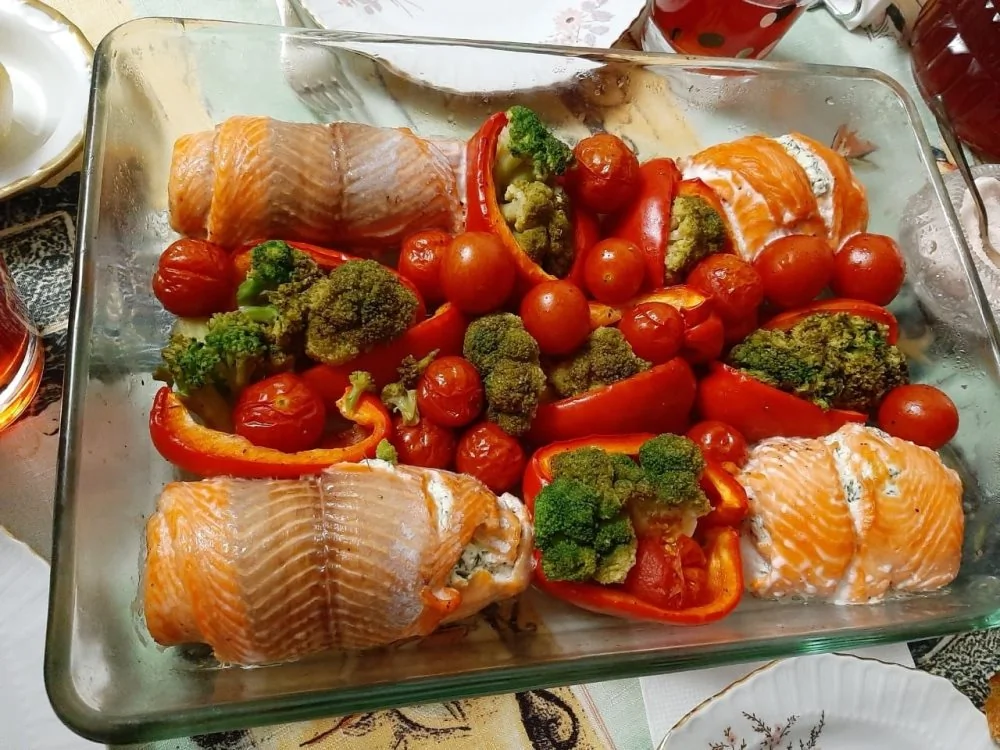 Ингредиенты для приготовления Запеченые рулеты из лосося с овощами: