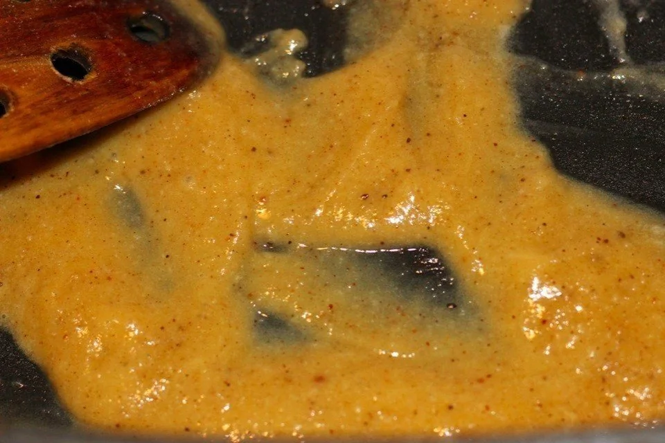 ШАГ 5 Убавьте огонь до слабого и варите, постоянного помешивая, 1 минуту, пока соус не загустеет и не станет однородным. Добавьте соль и перец.