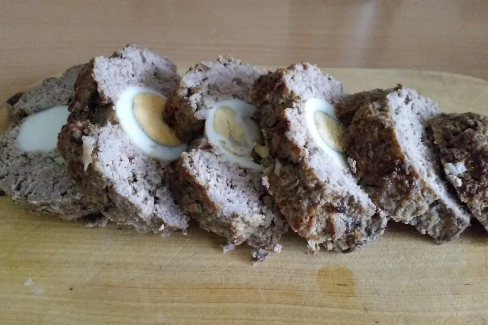 ШАГ 6 Сделать выемку и друг за другом выложить 2 вареных яйца и хорошо залепить.