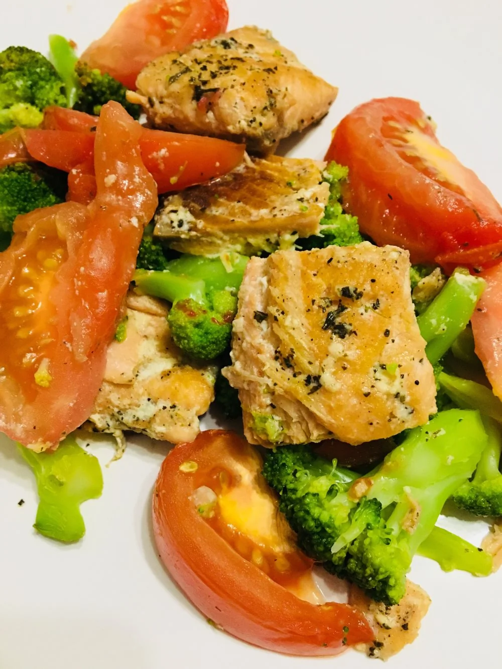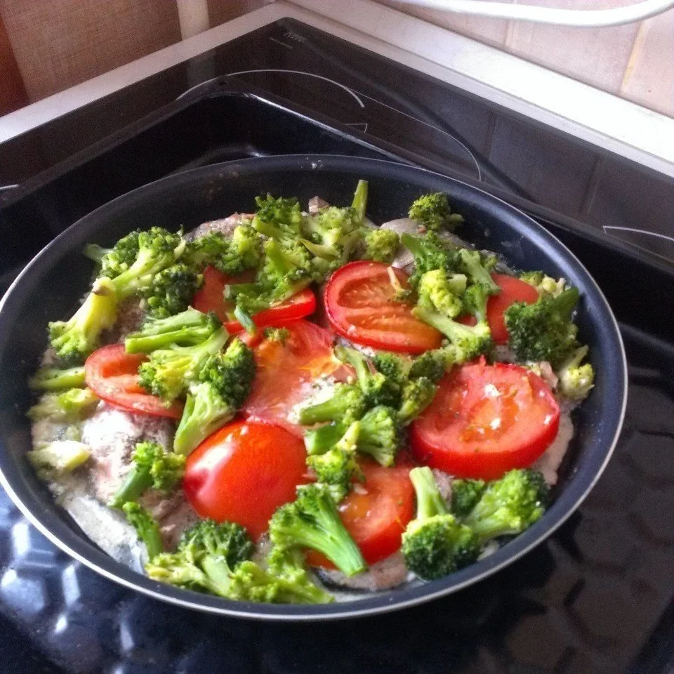 Горбуша с брокколи и помидорами