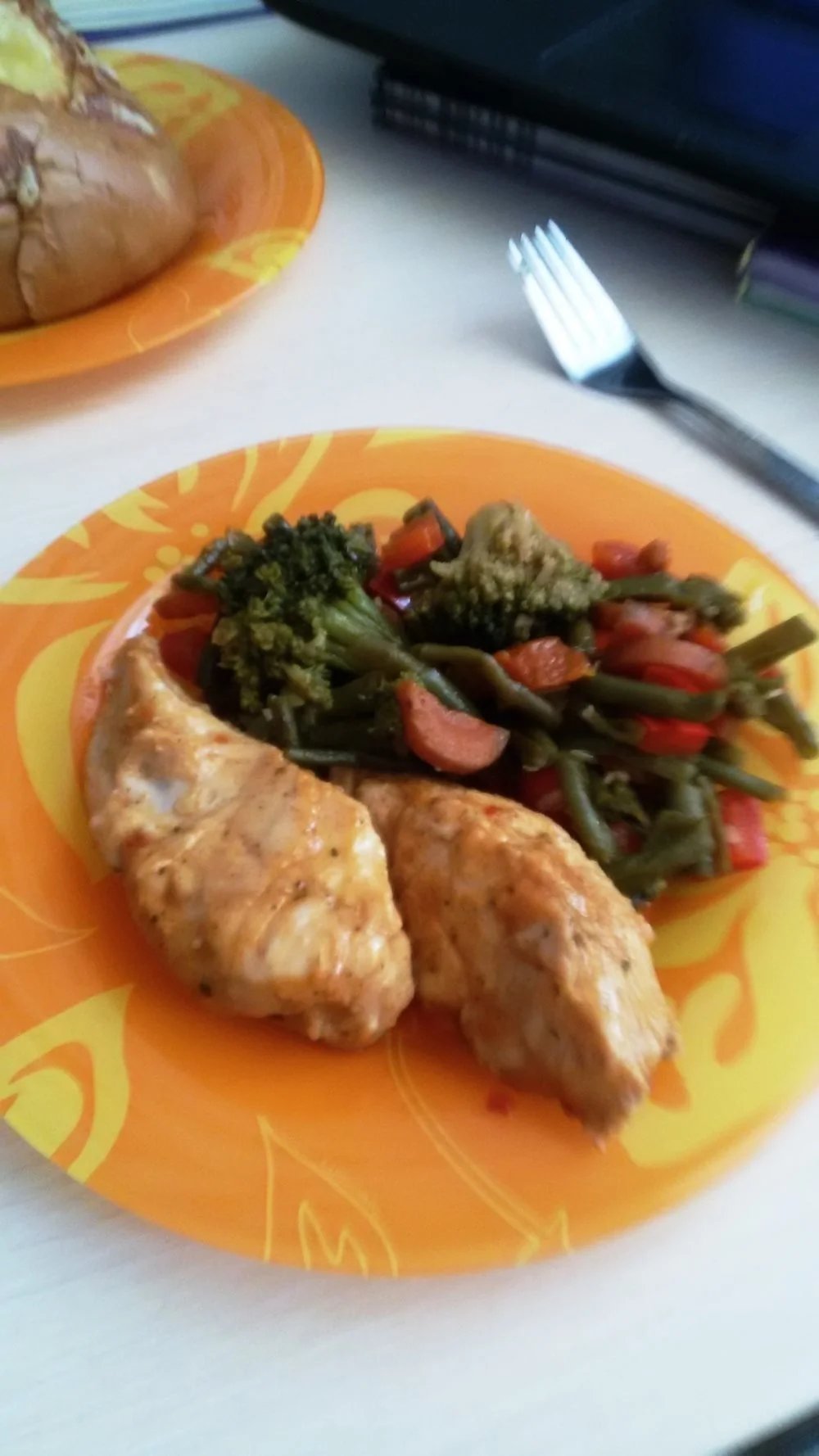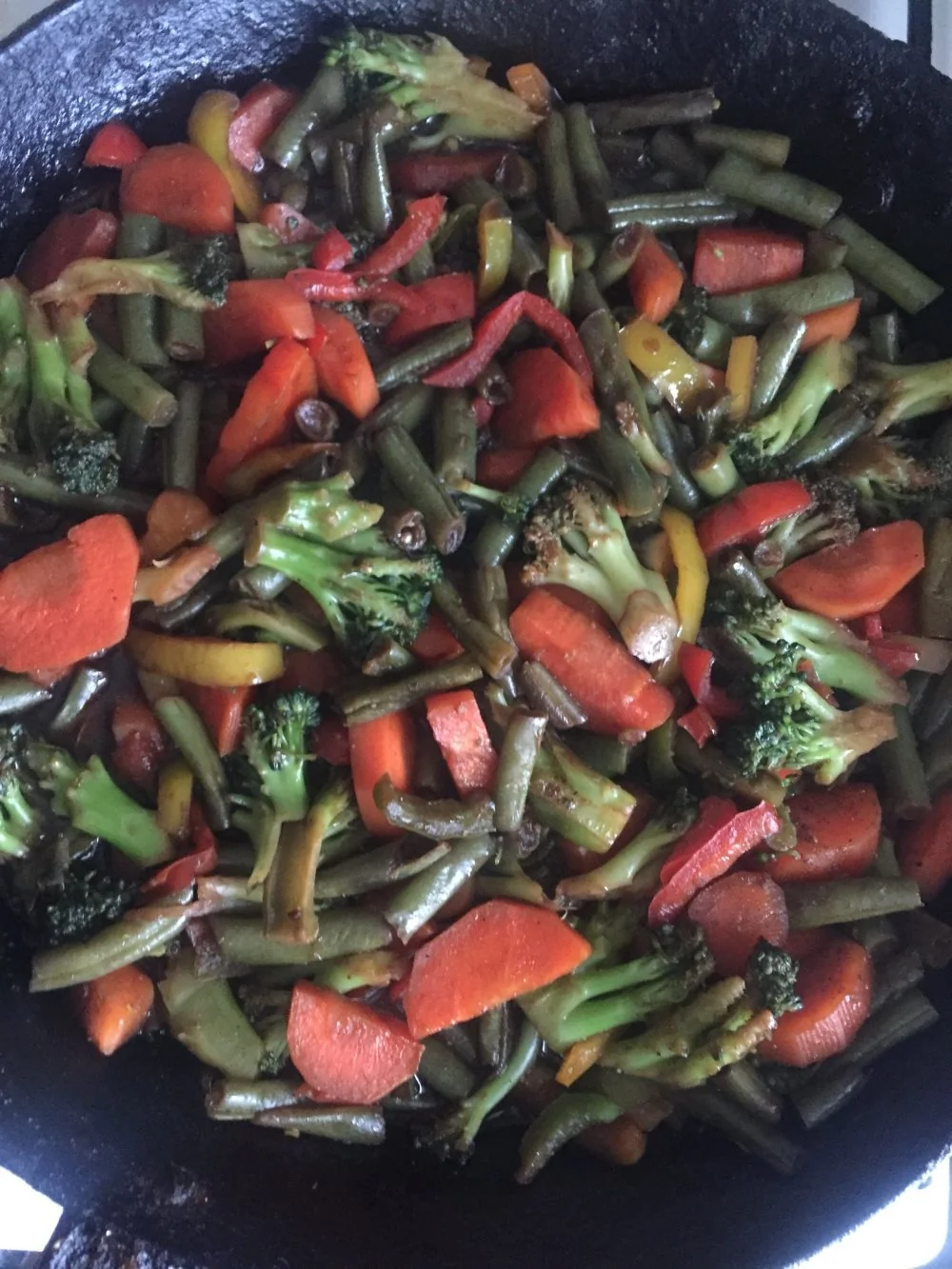 Капуста брокколи и стручковая фасоль тушеные в чесночно-соевом соусе