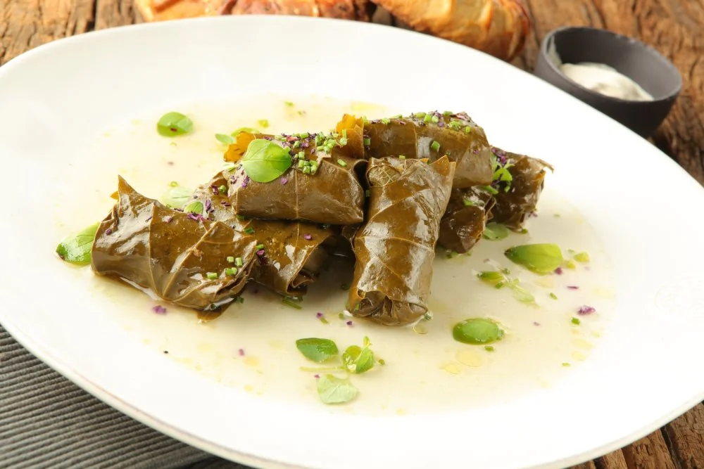 ШАГ 2 Тококш: из каждого виноградного листа вырезать круг, положить в него готовый фарш и завернуть в виде маленьких голубцов. Подготовленный токош положить в кастрюлю слоями, залить куриным бульоном, добавить сливочное масло, а также еще немного соли и перца. Варить до полной готовности.
