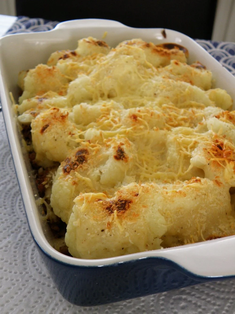 ШАГ 5 Осталось совсем немного, а именно: в форму для запекания первым слоем выложить фарш, сверху цветную капусту и равномерно залить соусом. Посыпать панировочными сухарями и тертым сыром. Запекать 15-20 минут в духовке при температуре 200°С до золотистой корочки.