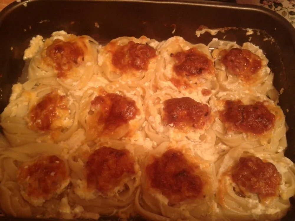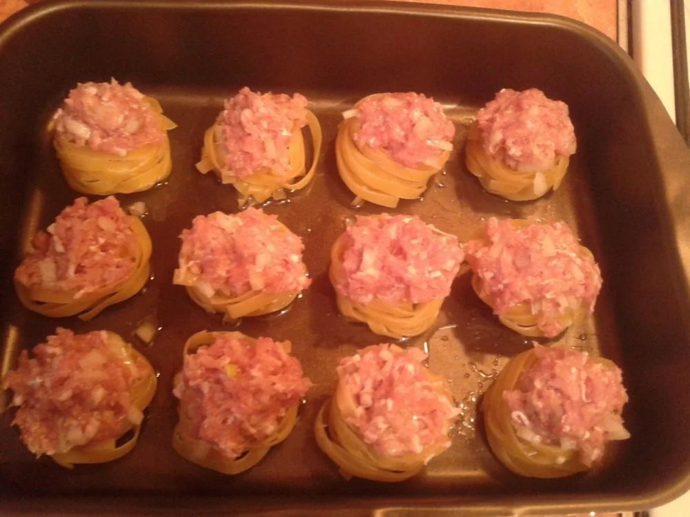 Ингредиенты для приготовления Макаронные гнезда с фаршем в духовке: