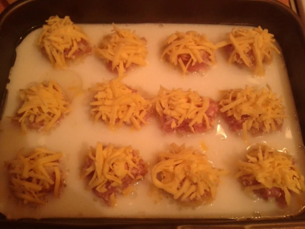 ШАГ 6 Заливаем гнезда этим соусом и сверху посыпаем натертым сыром.