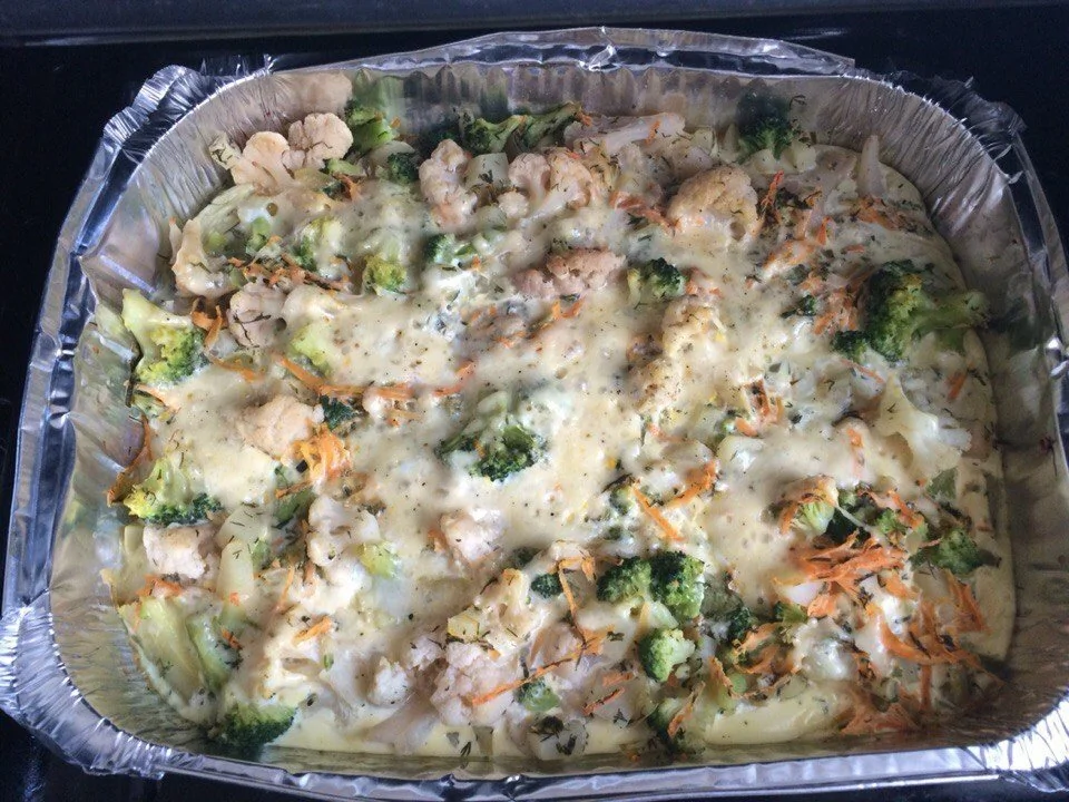 Низкокалорийная овощная запеканка с цветной капустой и брокколи