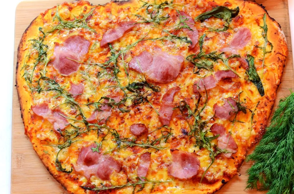 Ингредиенты для приготовления Пицца с грудинкой, сыром и рукколой: