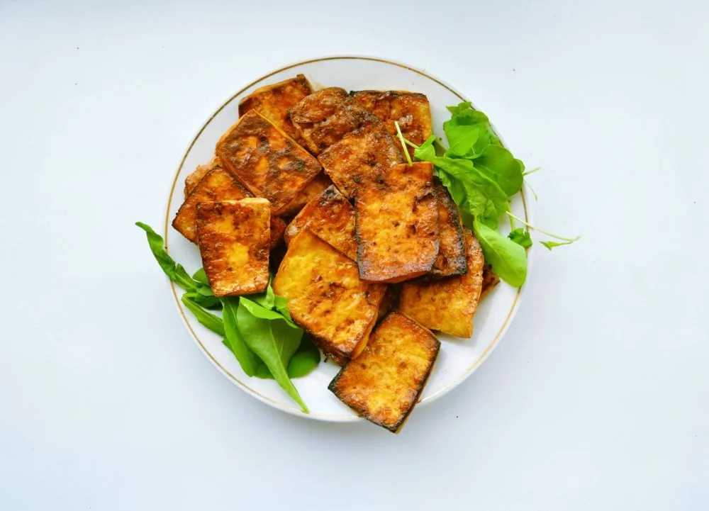 ШАГ 3 Нарезаем тофу и выкладываем на противень.