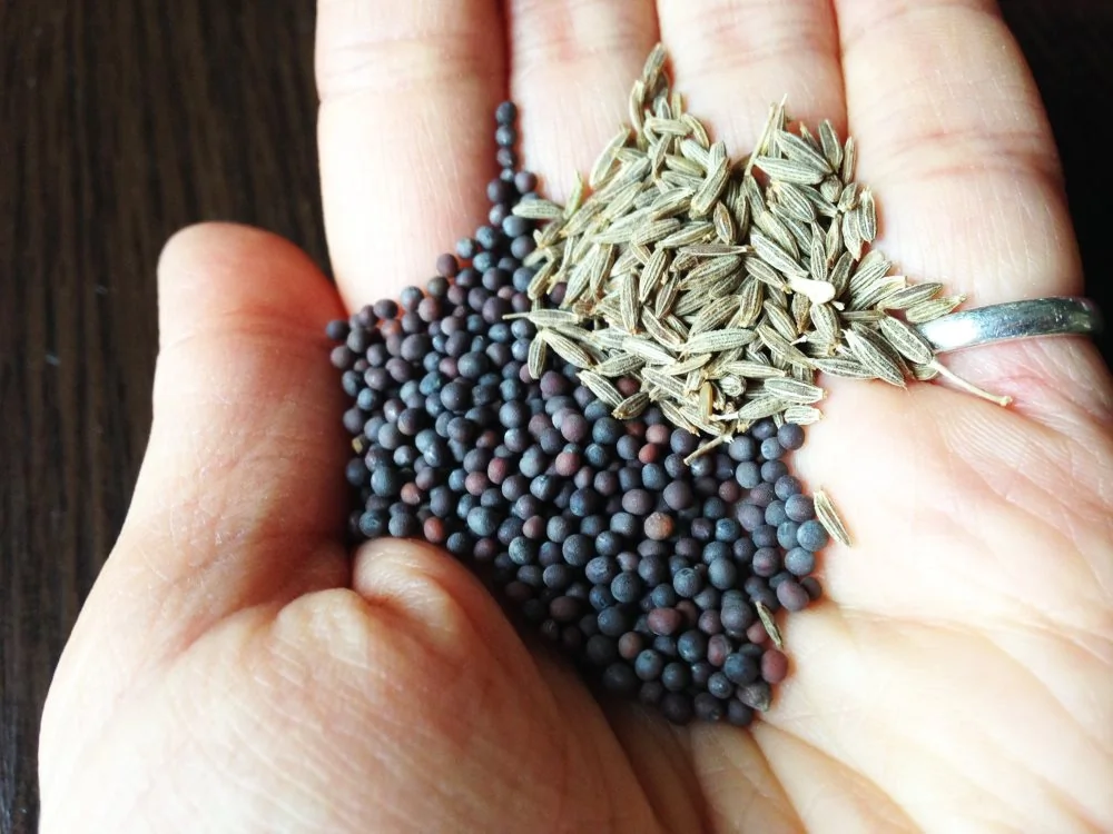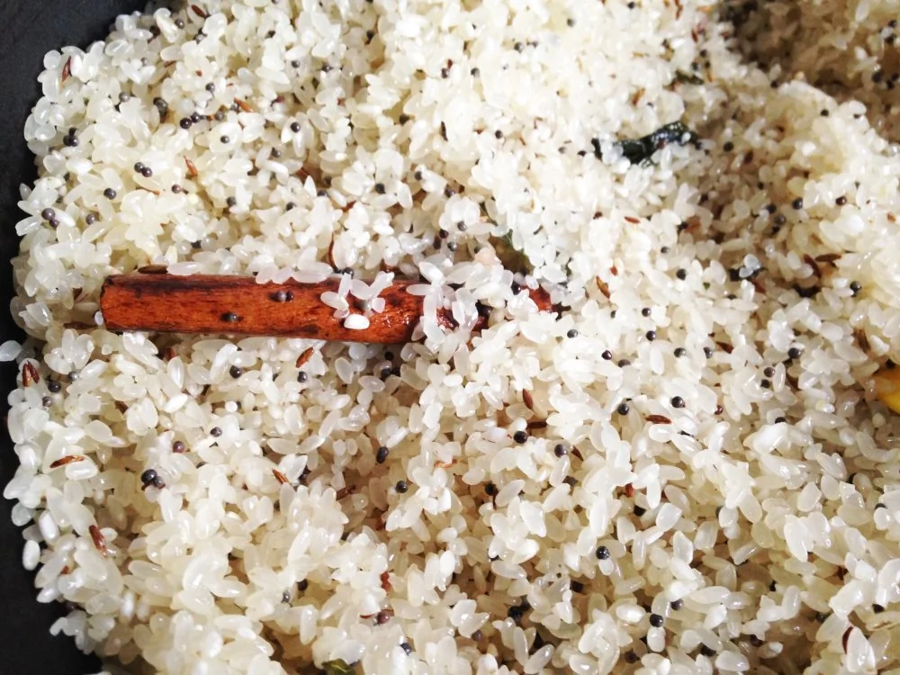 ШАГ 1 В первую очередь необходимо разогреть все семена в масле, до того момента пока зерна горчицы не начнут подпрыгивать (это очень забавно и ароматно). После чего уже можно приступать к обжариванию риса.