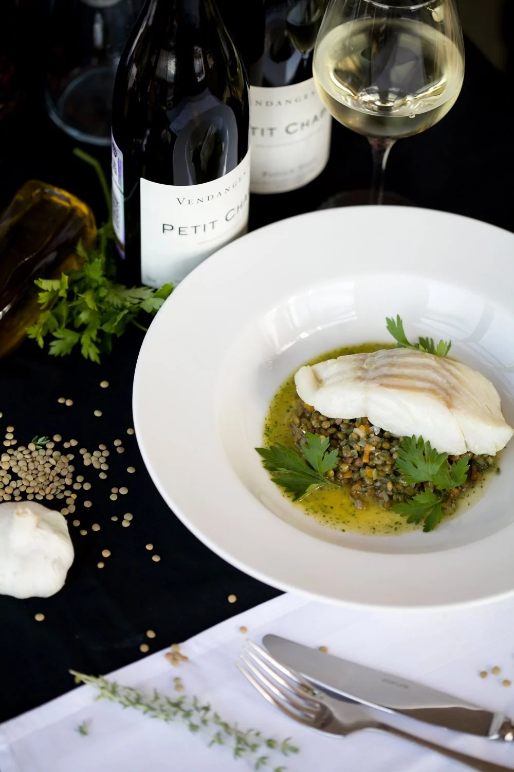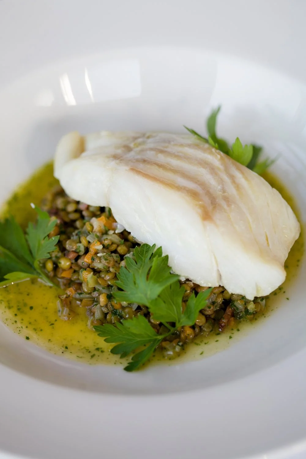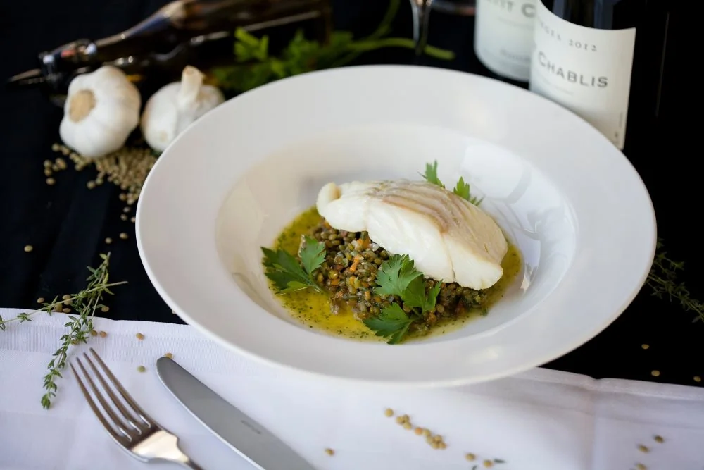 Треска с рагу из чечевицы