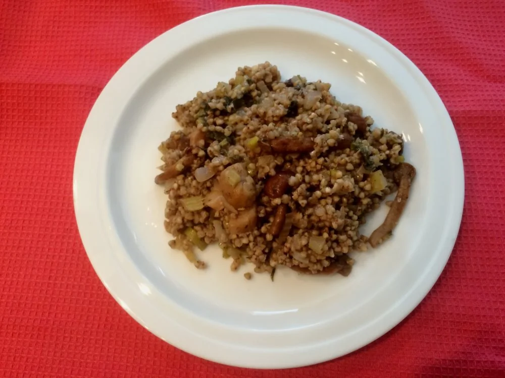 Гречотто с опятами, белыми грибами и молодой крапивой