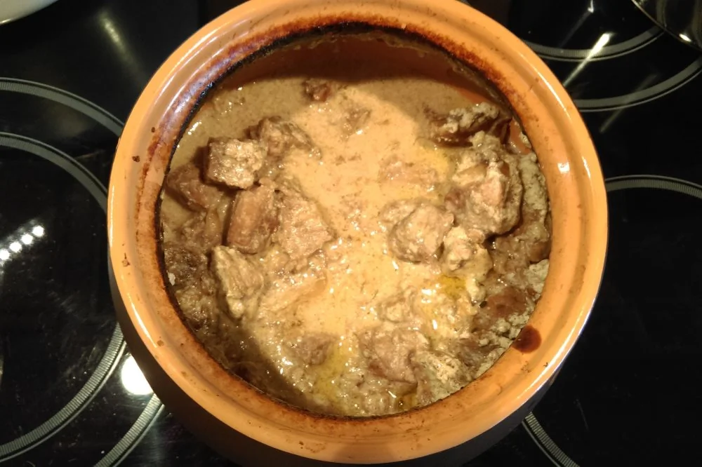 Ингредиенты для приготовления Говядина в горшочке в сметанно-горчичном соусе: