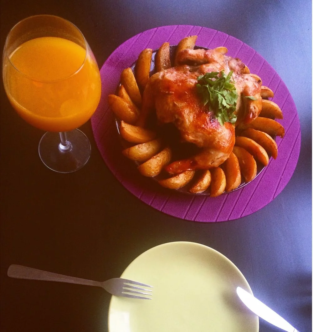 ШАГ 4 Выложить тушку на противень в заранее разогретую духовку до 200 градусов, залить оставшимся соусом и выпекать в течение 45 минут. Обычно я обжариваю курицу спинкой вниз и за минут 10 до готовности переворачиваю на другую сторону, чтобы две стороны хорошо пропеклись и приобрели румяный оттенок :)