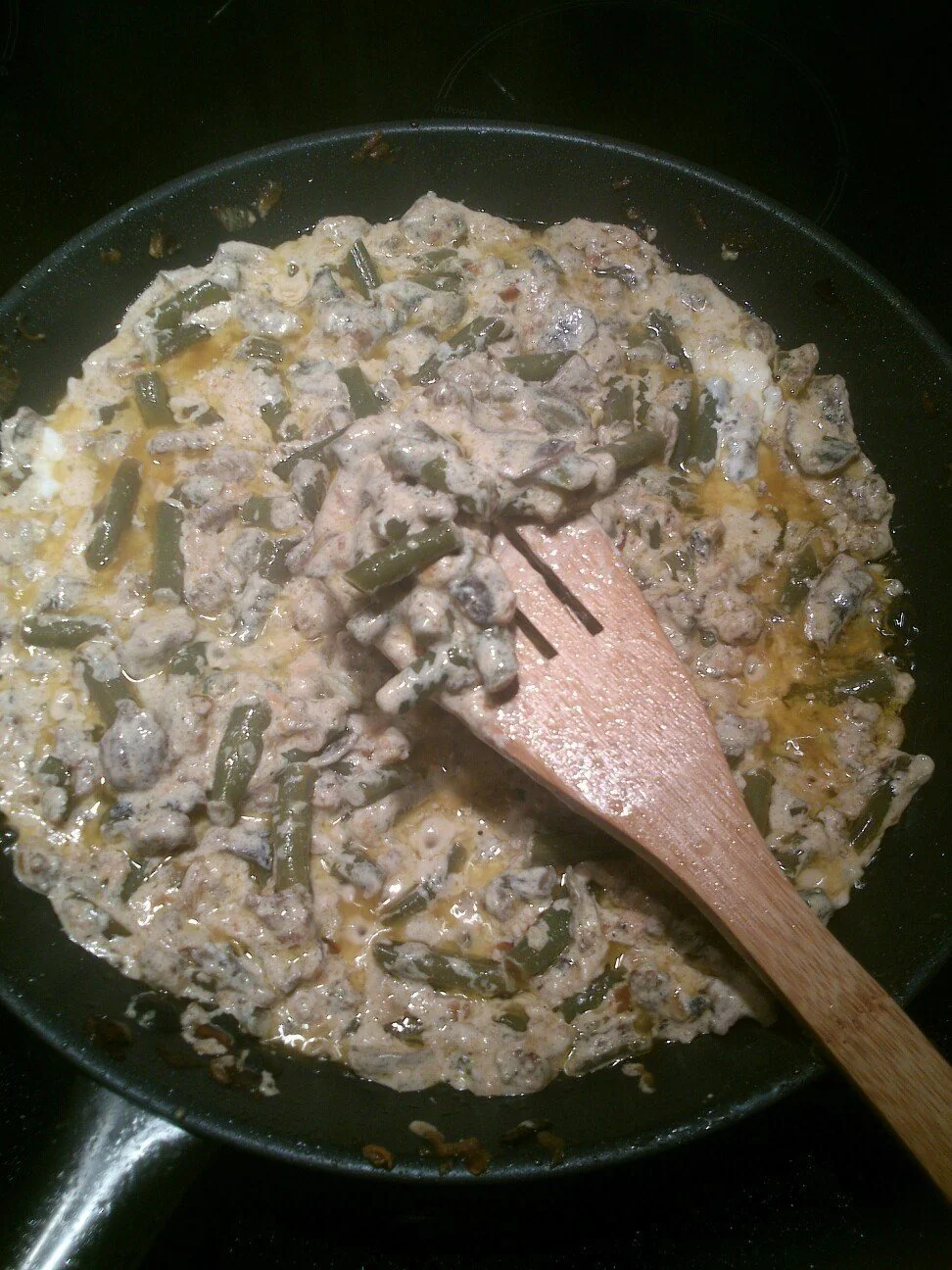 Зеленая фасоль с грибами в сметане