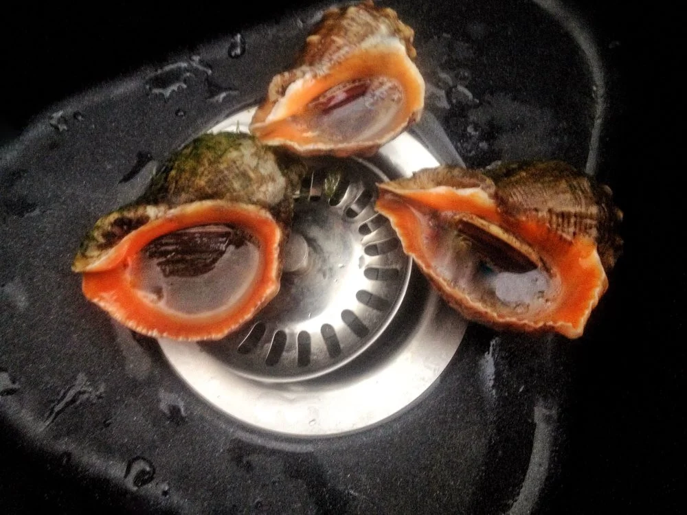 ШАГ 3 Промываем рапаны. Нарезаем на небольшие кусочки