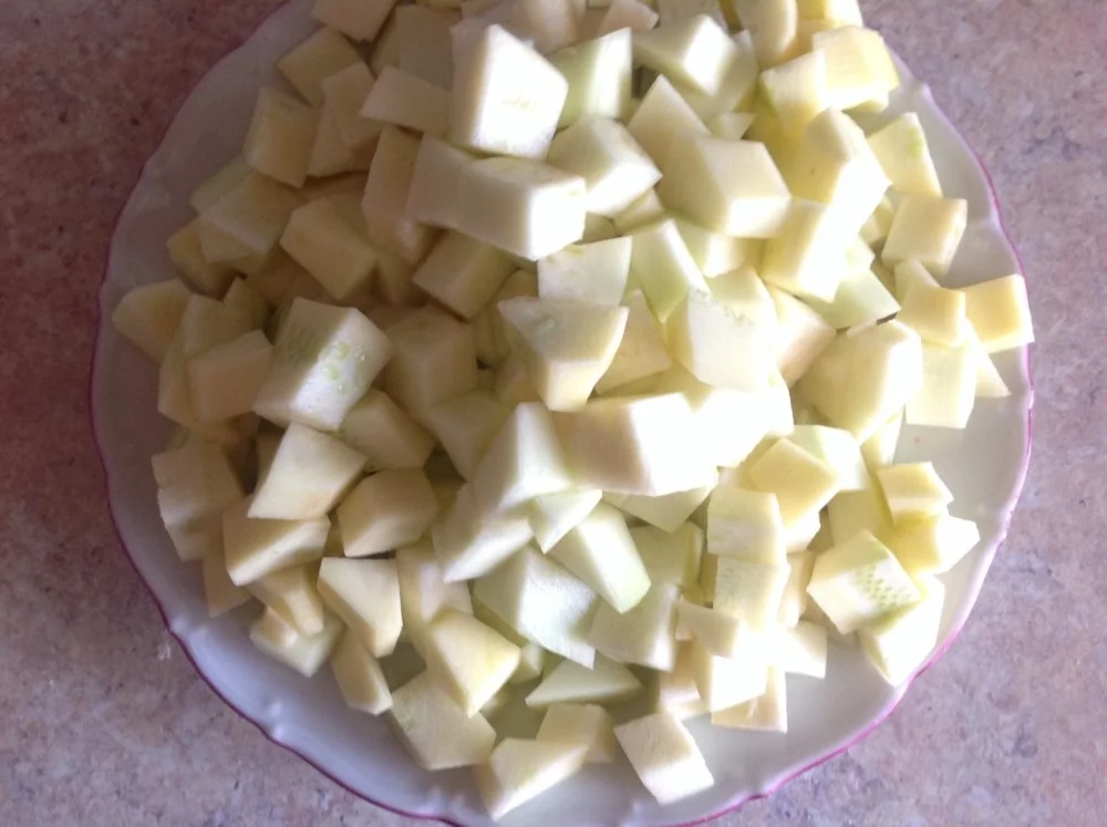 ШАГ 2 В это время мелко покрошите лук и чеснок. С помидоров снимите кожу и тоже мелко покрошить. Кабачки очистите и порежьте кубиками. Натрите морковь на мелкой терке.