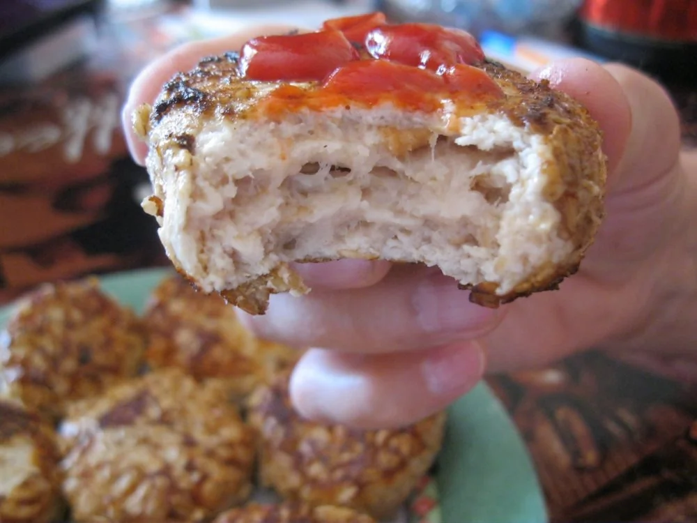ШАГ 5 На сковороде разогреть растительное масло. Котлетки обвалять в овсяных хлопьях, выложить на сковороду и немного приплюснуть.