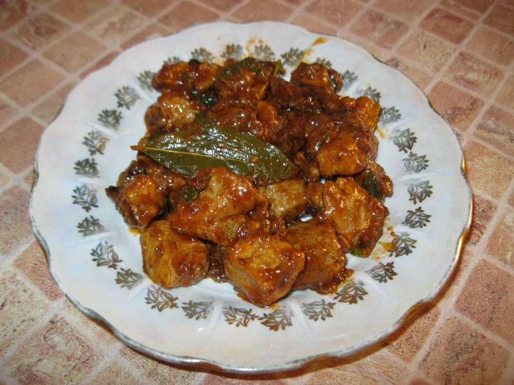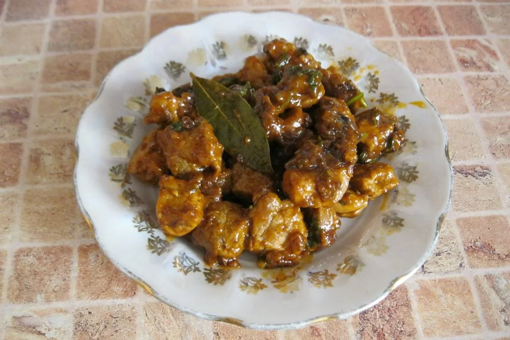 ШАГ 2 В достаточно глубокой сковороде разогреть растительное масло, выложить кусочки свинины и пожарить на сильном огне до золотистости (≈5 минут).