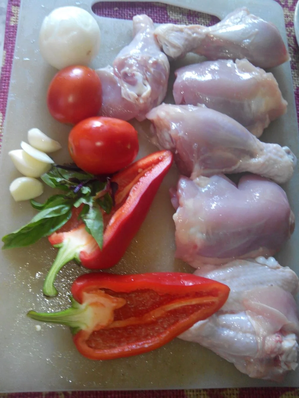 Ингредиенты для приготовления Курица с соусом «Взрыв сезонных овощей» и отварным картофелем от кулинарного импровизатора Пивного Антона: