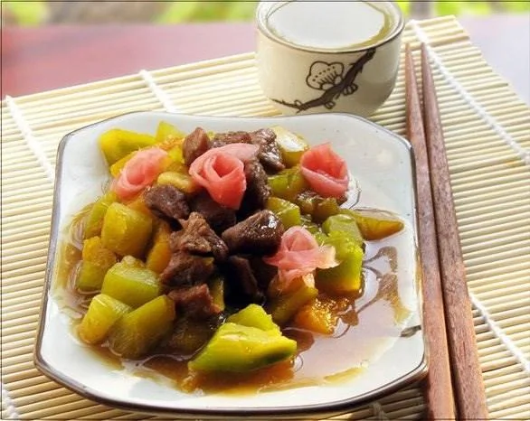 ШАГ 5 Тыкву выложить в пиалки. В оставшийся соус влить разведенный в 2–3 чайных ложках холодной воды крахмал и, помешивая, варить, пока смесь не загустеет. Этим соусом полить тыкву, украсить блюдо полосками имбиря и подать к столу.