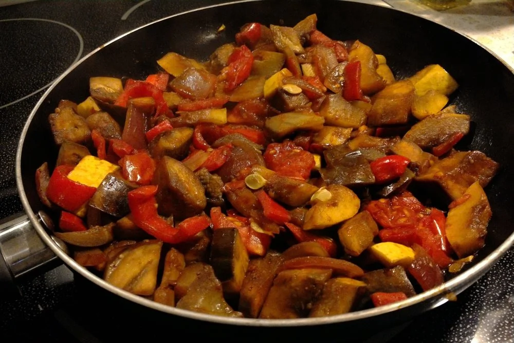 Овощи в красном вине и соевом соусе