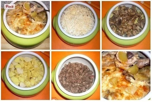 ШАГ 1 Сердечки промыть и срезать с них лишнее — быстро обжарить их на сковороде (буквально минуту - две), посолить, посыпать немного любимыми приправами. Выложить на дно горшочка.