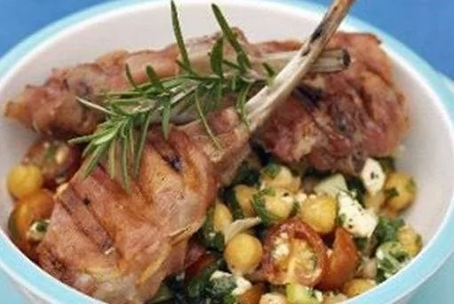 ШАГ 4 Отбивные запекать в гриле по 5 минут с каждой стороны, а затем подать на стол вместе с салатом.