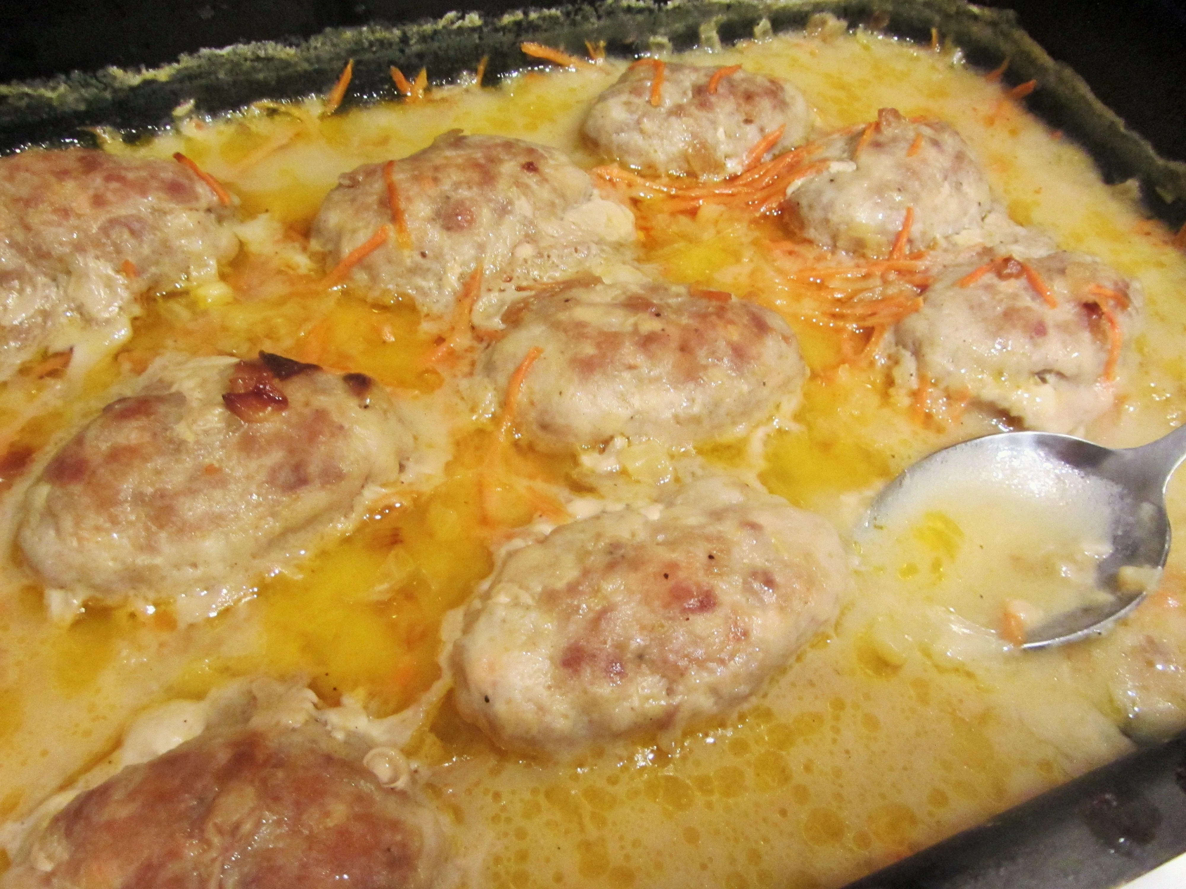 ШАГ 1 Хлеб очистить от корки, размочить в сливках, отжать. К фаршу добавить хлеб, мелко порезанные лук и чеснок, приправить и тщательно перемешать.