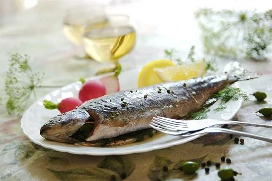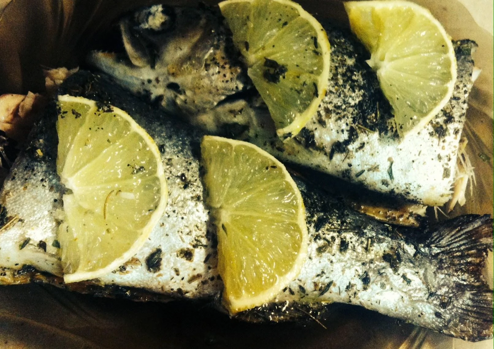 ШАГ 5 Готовую форель подавать с четвертинкой лимона и белым вином.