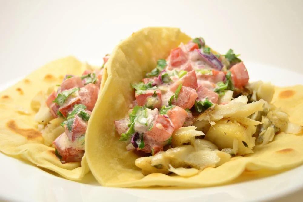 Тако с жареной треской и соусом сальса