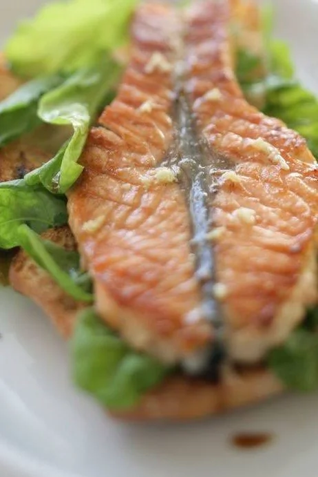 Ингредиенты для приготовления Маринованная семга на гриле с хлебом и салатом: