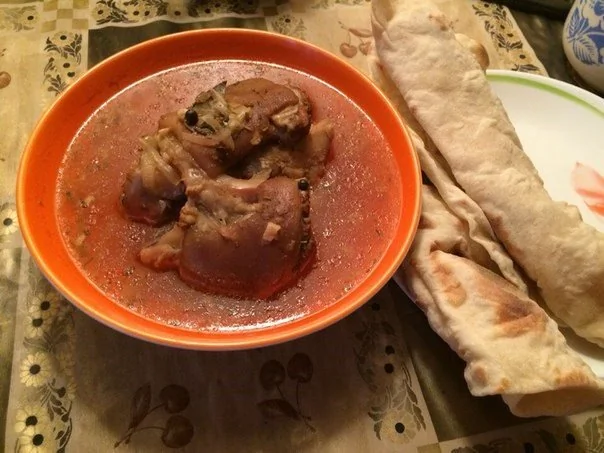 ШАГ 4 Выложить рульку с бульоном в отдельной миске, подать вместе с лавашом