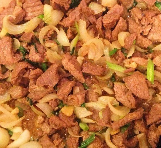 ШАГ 11 Жарим до готовности мяса. Лук не должен быть слишком твердым, но и не должен разваливаться. При желании за 3 минуты до конца приготовления можно добавить 1 чайную ложку устричного соуса. Так же при желании в процессе можно вместе с луком добавить тоненько нарезанную полукругом морковь.
