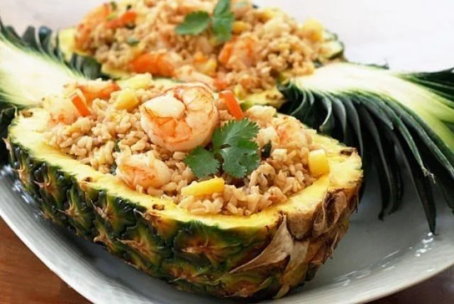Ингредиенты для приготовления Острый рис с креветками в ананасе: