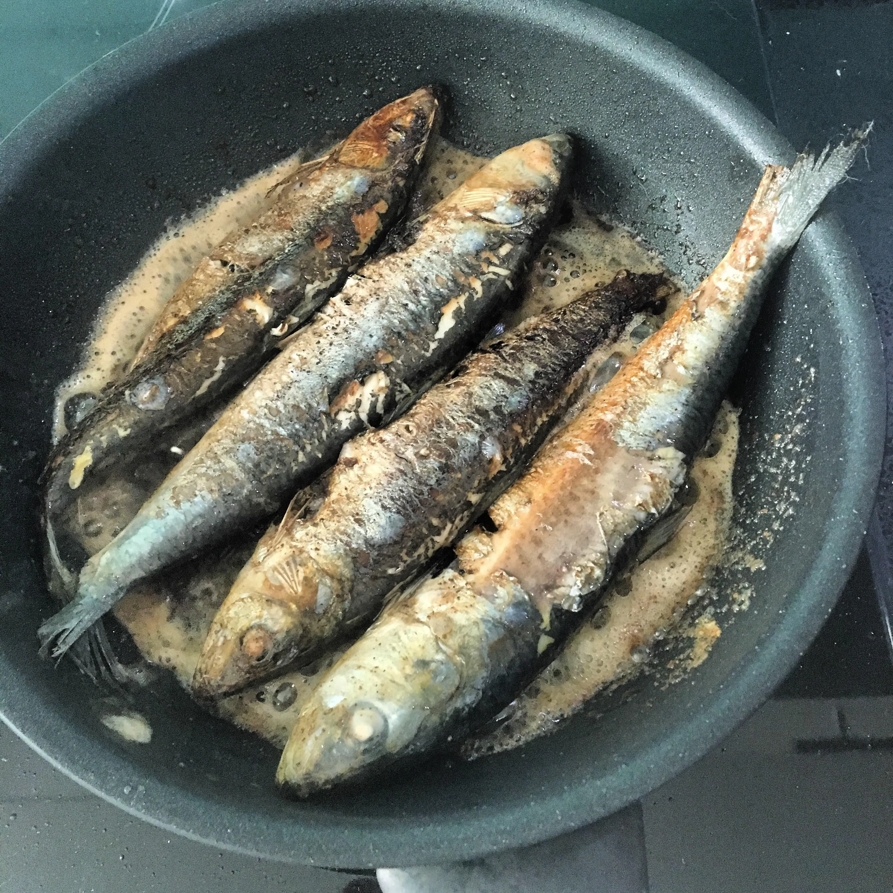 ШАГ 7 Жарить сардины на гриле по 2–3 минуты с каждой стороны.