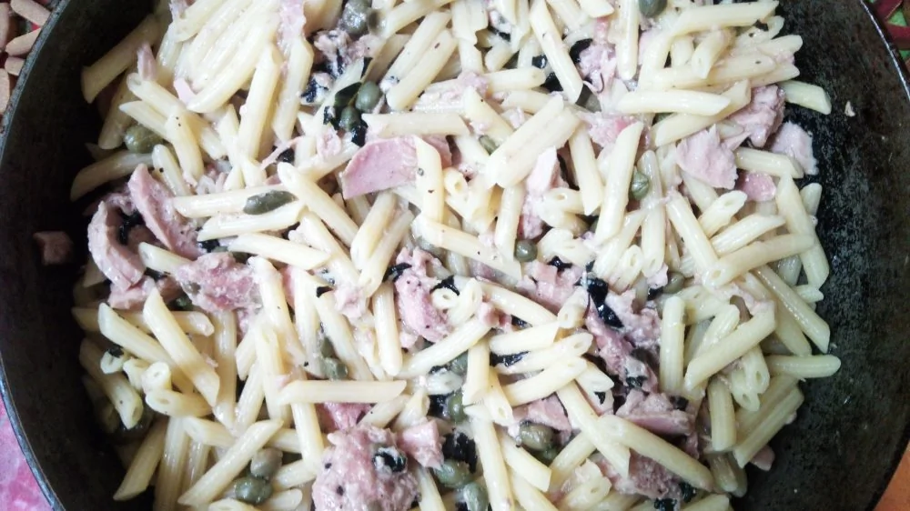 Ингредиенты для приготовления Пене с базиликом, тунцом и каперсами: