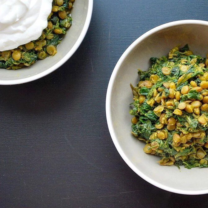 Тушеная со шпинатом чечевица