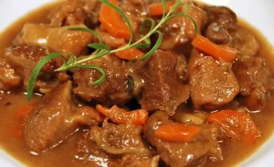 Телятина в маринаде из кваса, лука, перца и корня имбиря