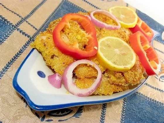 ШАГ 4 Извлечь рыбу из масла широким ножом, дать стечь лишнему жиру и положить в тепло, пока жарятся остальные куски. Подавать на стол сразу по готовности, украсив нарезанным кружками лимоном.
