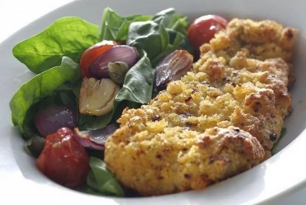 ШАГ 8 Слегка смазать панированное филе маслом с двух сторон и запекать на противне под грилем, пока рыба не прожарится с двух сторон.