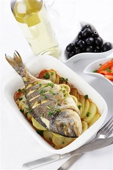 Дорада, запеченная с лимонным соком, петрушкой и сливочным маслом