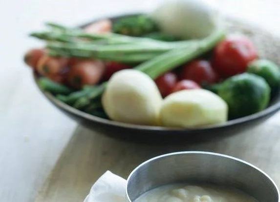 ШАГ 6 Приготовить соус: смешать в блендере отваренные стебли спаржи, желтки, сок 1 лимона и кукурузную муку, добавляя по необходимости бульон.