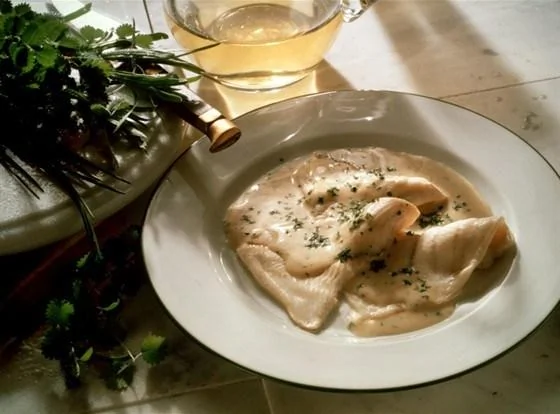 Филе морского языка с соусом бешамель а ля гратен